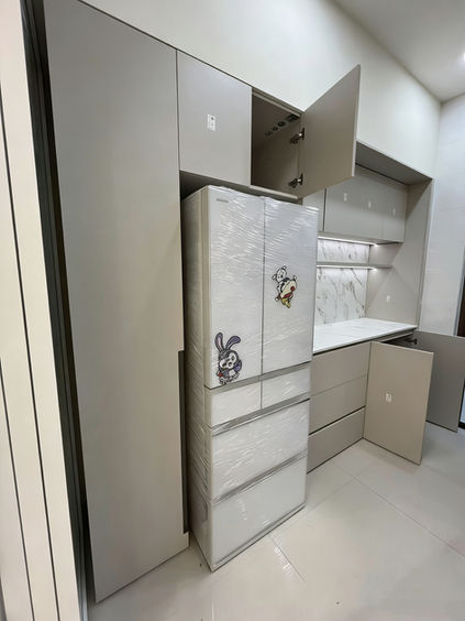 從玄關櫃體、電視主牆到餐廚區與立面收納,皆以一致的設計語言串聯,讓骨骼線、格柵細節與淺木紋理自然融入日常場景之中。奶白櫃體帶來乾淨柔和的基調,搭配局部木質檯面與燈光層次,讓整體空間不僅保有法式的優雅輪廓,也多了一份溫潤而舒適的居住感受。整體在法式美感之外,也兼顧收納機能與使用便利性,呈現出更適合現代生活的優雅日常。
