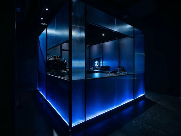 本案為 信義新光三越咖啡廳 商用案例,我們完成了大型發光壓克力裝置與整圈黑色櫃體的落地執行,將前衛、未來感十足的設計語彙,真正轉化為可被看見、可被使用、也可被記住的商業空間。